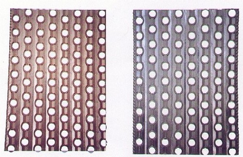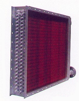 TL型高效换热器系铜管穿铝片式换热器,它采用了先进的机械涨管和圆弧波纹双翻边铝肋片结构型式。机械涨管和弧波波纹双翻边铝肋片结构形式。机械涨管使钢管与铝肋片接触紧密,圆弧波纹能促进流体紊流,破坏边界层,提高传热系数。先进的结构型式,再加上水路行程,管距,片距设计合理,使得该换热器具有传热性能好,空气阻力小,结构紧凑,重量轻等特点。它可广泛应用于空调、冷却、去湿、采暖等工程中,是新风机组的空气处理机组和空气处理机组理想的配套产品,它又可与风管连接作为冷却或加热单独使用。 铜管焊接采用低温快速钎焊,确保耐压>1.2Mpa。 该换热器有多样片距(2.5-3.6毫米),规格品种齐全可满足不同工况和各种组合的需要。 从传热学理论可知,对于水-空气热交换器的最大热阻在空气侧,为了增大传热系数,必须减小空气侧热阻,而最有效的方法是利用边界层理论,增大空气的紊流状态,即增大空气侧的放热系数。为此,设计了四种先进的肋片片形: ●V型肋片 ●V形+条缝 ●正弦波形 ●正弦波+桥 上述四种肋片片形可满足不同用户不同的工艺要求。 | |